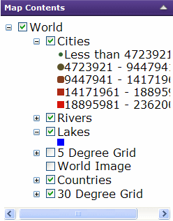 Uma aplicação que trabalha com mapas pode usar mais do que uma fonte de informação. Cada conteúdo corresponde a um serviço, como por exemplo um serviço de ArcGIS Server ou ArcIMS. Cada fonte de informação contém um ou mais temas de informação. Cada tema corresponde a um tipo de informação apresentado no mapa, tais como estradas, cidades ou imagens de satélite.